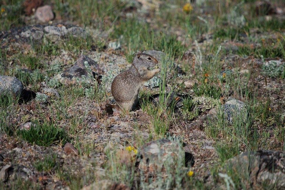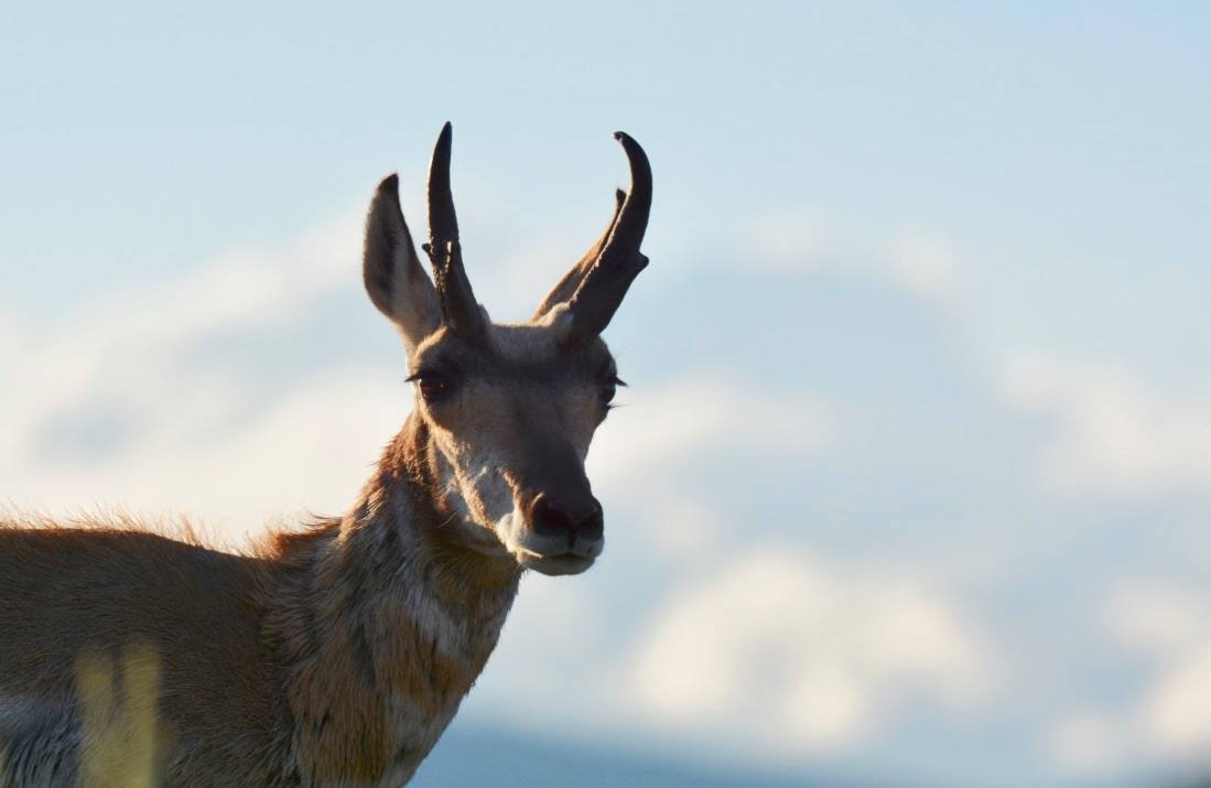 From top to bottom: a black wolf, a coyote mom and her two pups (one of which is trying it’s darnedest at a howl!), a large elk buck, a tiny ground squirrel, an osprey with two chicks in it’s nest, a pronghorn, a raven, and a red fox