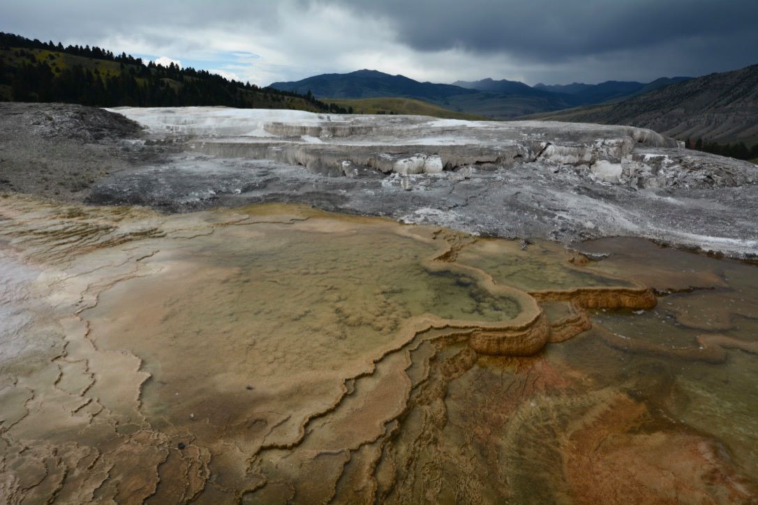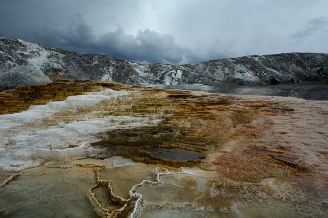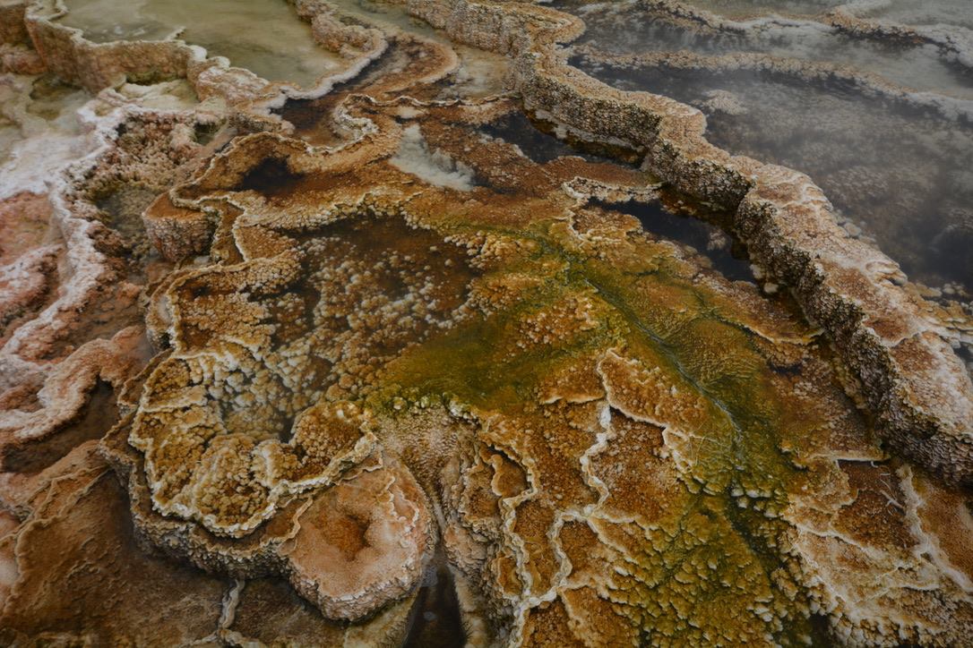 One of the most visually striking regions of the park is the Mammoth Hot Springs area.